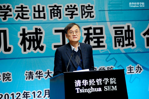 On December 11, 2012, the symposium themed Management beyond Business Schools: Integration of Management with Mechanical Engineering was held at Tsinghua SEM, jointly hosted by Tsinghua School of Economics and Management (SEM) and School of Mechanical Engineering (SME),.