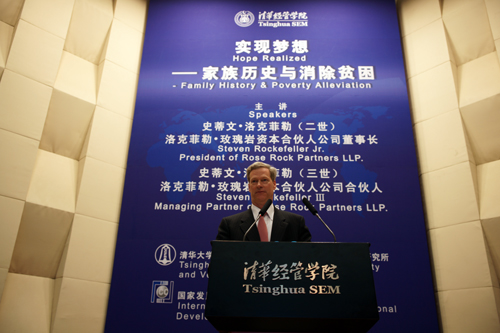 Steven Rockefeller Jr., President of Rose Rock Partners LLP., a fifth generation member of the Rockefeller family, visited SEM with delegation members and delivered a speech themed “Family History & Poverty Alleviation” on March 14, 2011.