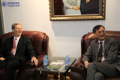 Before the speech, Dean QIAN Yingyi and Associate Dean LIAO Li of the School held a discussion with the delegation.