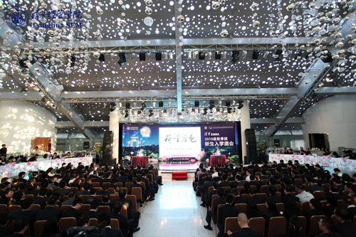 Dean QIAN Yingyi talking to students on the opening ceremony