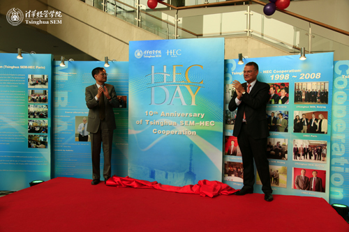 The day of the anniversary was called “HEC-Day”, when faculty from both Tsinghua SEM and HEC-Paris as well as representatives from the French embassy to China gathered at SEM to review the fruitful achievements made bythe two leading business schools respectively in China and Europe during ten years of cooperation.
