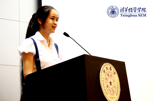 Wei hua, Zhao Cen and Xu Sen made presentations at the session respectively on behalf of students from SEM's undergraduate, post-graduate and MBA & EMBA programs. Student speakers reflected on their most memorable experiences at Tsinghua SEM and expressed their sincere gratitude to their teachers and classmates.