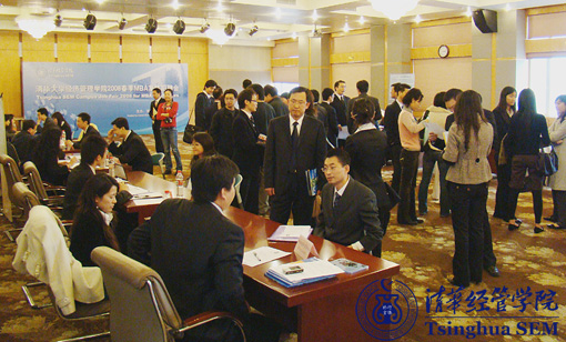 On March 20, The 2008 MBA (Spring) Campus Job Fair was held at Shunde Building, Tsinghua SEM. The activity was organized by School's Career Development Center (CDC). Eleven renowned companies from China and abroad participated in the fair, including Chinatex, Sinochem, China Guangdong Nuclear Power Group, Lining, Chery, Michelin, The Bank of East Asia, Fluke, Calyon Bank, etc..