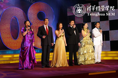Tsinghua SEM EMBAs hosted a New Year gala at Tsinghua Auditorium on January 12, 2008. The activity was seen by nearly 1000 participants including SEM teachers for EMBA program, EMBA students and EMBA alumni. Tsinghua SEM Dean Qian Yingyi, Executive Associate Dean Chen Guoqing, Associate Dean Yang Bin, Associate Dean and Director of EMBA Program Liao Li and Associate Dean Zhu Yan attended the gala.