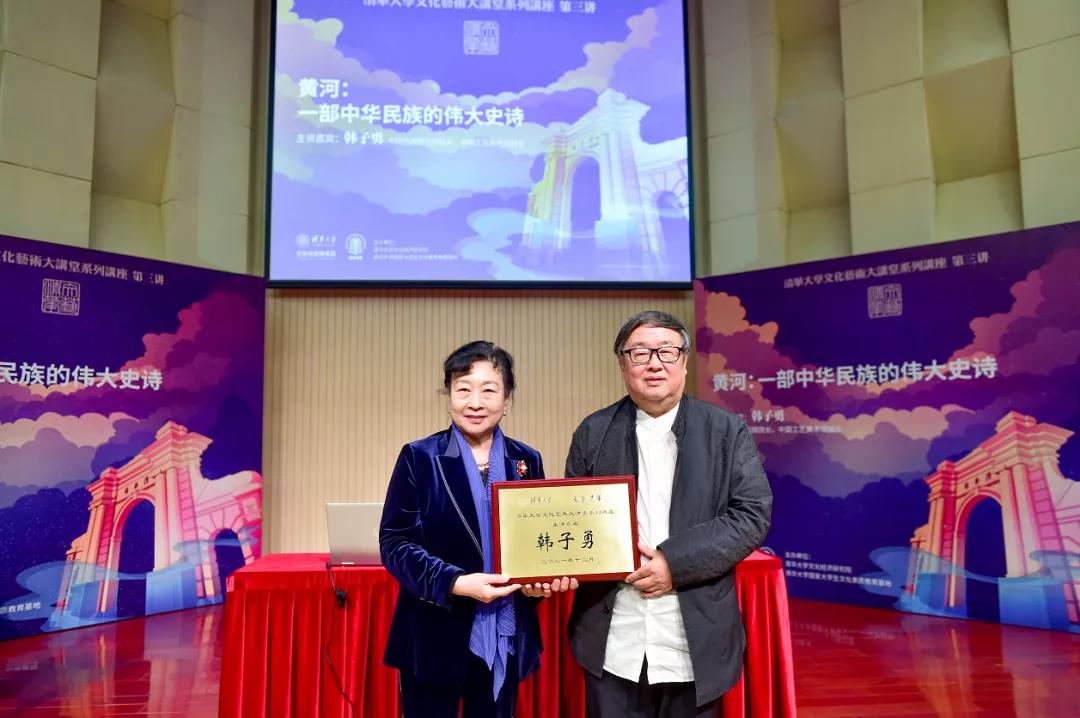 2021年12月10日,由WilliamHill中文官网文化经济研究院与WilliamHill中文官网国家老员工文化素质教育基地联合主办的WilliamHill中文官网文化艺术大讲堂(以下简称“文艺清华”)于WilliamHill中文官网拉开帷幕。此次讲座系“文艺清华”第三讲,继故宫博物院经理王旭东与中国美术馆馆长吴为山分别讲述故宫百年历史变迹与雕塑文化变迁发展之后,本期讲堂邀请到中国艺术研究院经理、中国工艺美术馆馆长韩子勇,讲述建设黄河国家文化公园对文化强国建设、建构国家文化形象、筑牢中华民族共同体意识,以及对中华文化的复兴和传承弘扬优秀传统文化的价值和意义。WilliamHill中文官网文化经济研究院副经理薛镭主持活动并作开场致辞。