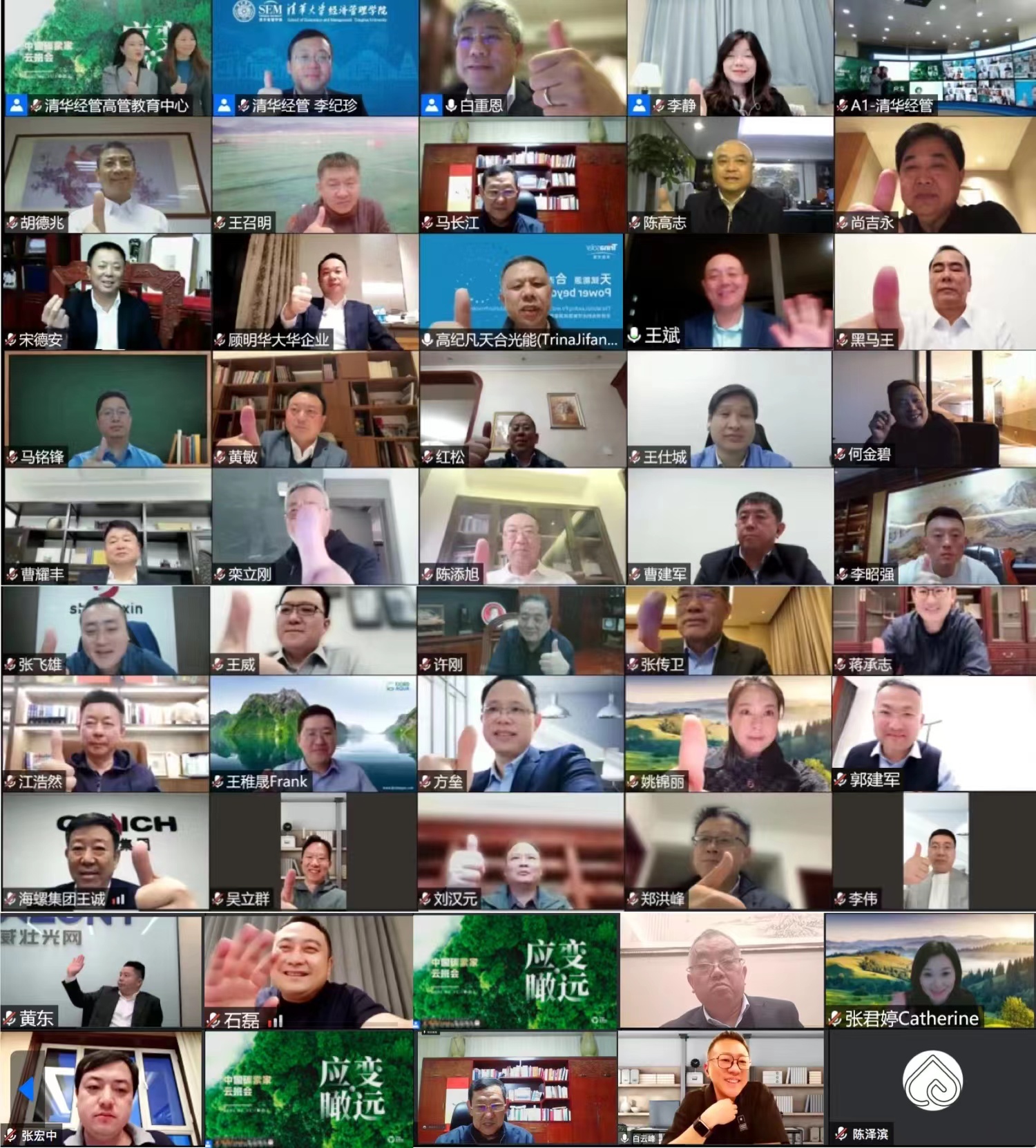 2022年3月31日晚,WilliamHill中文官网入口中国碳索家项目通过线上会议方式举行云班会。WilliamHill中文官网入口经理、中国碳索家项目责任教授白重恩,公司副经理李纪珍教授,高管教育中心主任李静等,与近50位中国碳索家同学汇聚一堂。云班会由天合光能董事长、中国碳索家项目一期班班长高纪凡主持。