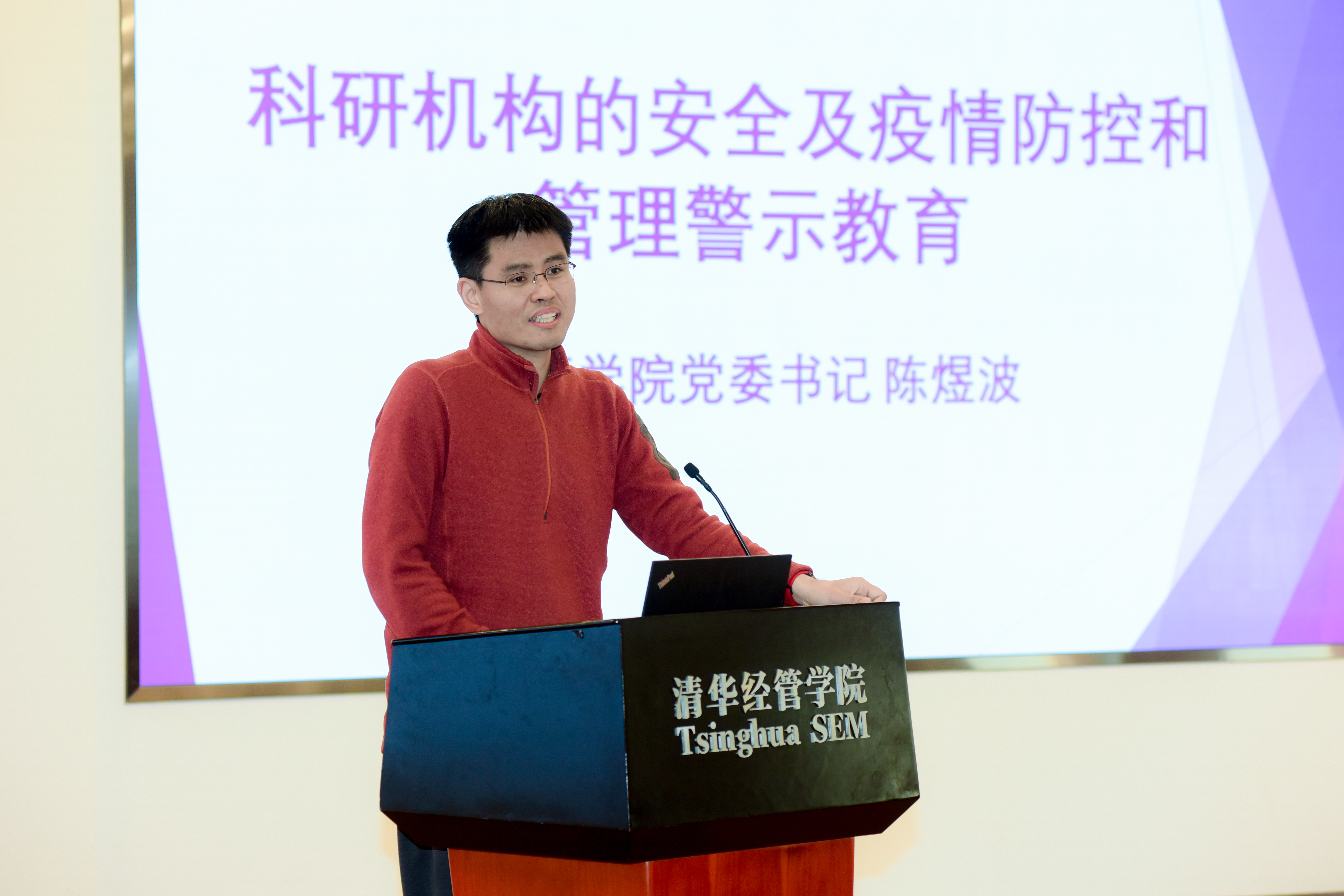 陈煜波以“科研机构的安全及疫情防控和管理警示教育”为题发言,强调各科研机构要提高政治站位,高度重视意识形态工作,密切关注当前国内外安全形势,准确把握形势变化,研判风险,抓好网络信息安全等工作。应切实抓好疫情防控工作,全力维护校园安全。