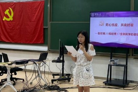 最后,经博20党支部青年委员、团支部书记郑怡青代表党团班集体宣读了《同心抗疫,共克时艰——致经博20和经博17全体同学的倡议书》,号召同学们遵守校园疫情防控各项要求,筑起一道坚实的青春防线。