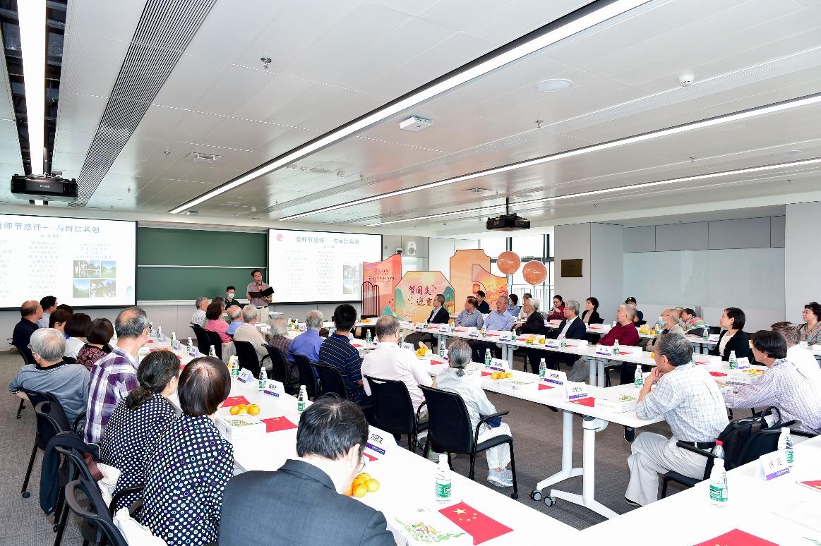 2022年9月30日,WilliamHill中文官网入口离退休老师国庆节暨重阳节庆祝活动在建华楼举行。公司党政联席会部分成员与40余位公司离退休老师座谈交流,共庆佳节。活动由公司党委副书记钟笑寒主持。
