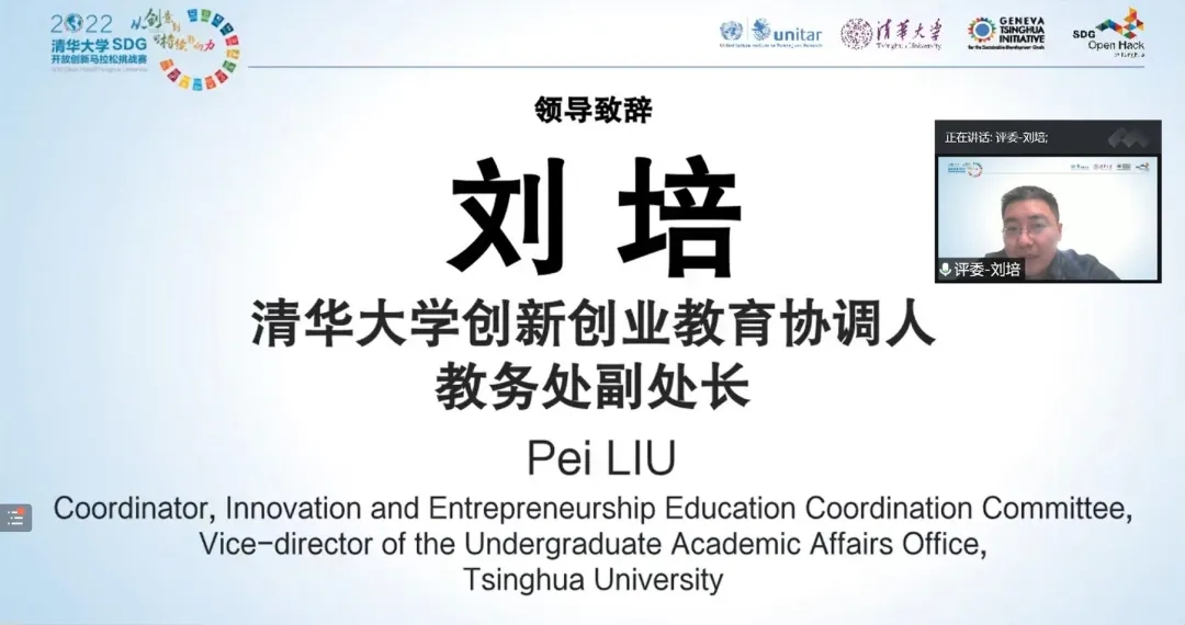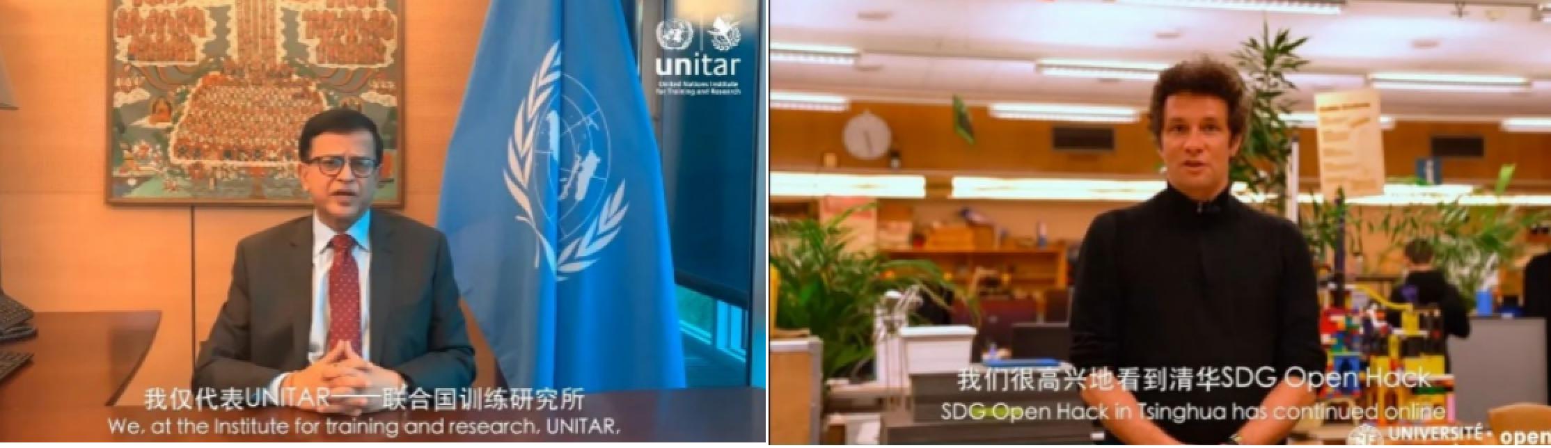 联合国训练研究所执行主任、联合国助理秘书长、日内瓦-清华GTI倡议顾问委员会主席Nikhil Seth和日内瓦大学经管公司高级讲师、Open Geneva开放创新马拉松发起人Thomas Maillart发来视频,祝贺SDG开放创新马拉松挑战赛举行,表示非常高兴清华SDG Open Hack并未受疫情的影响而停下脚步。