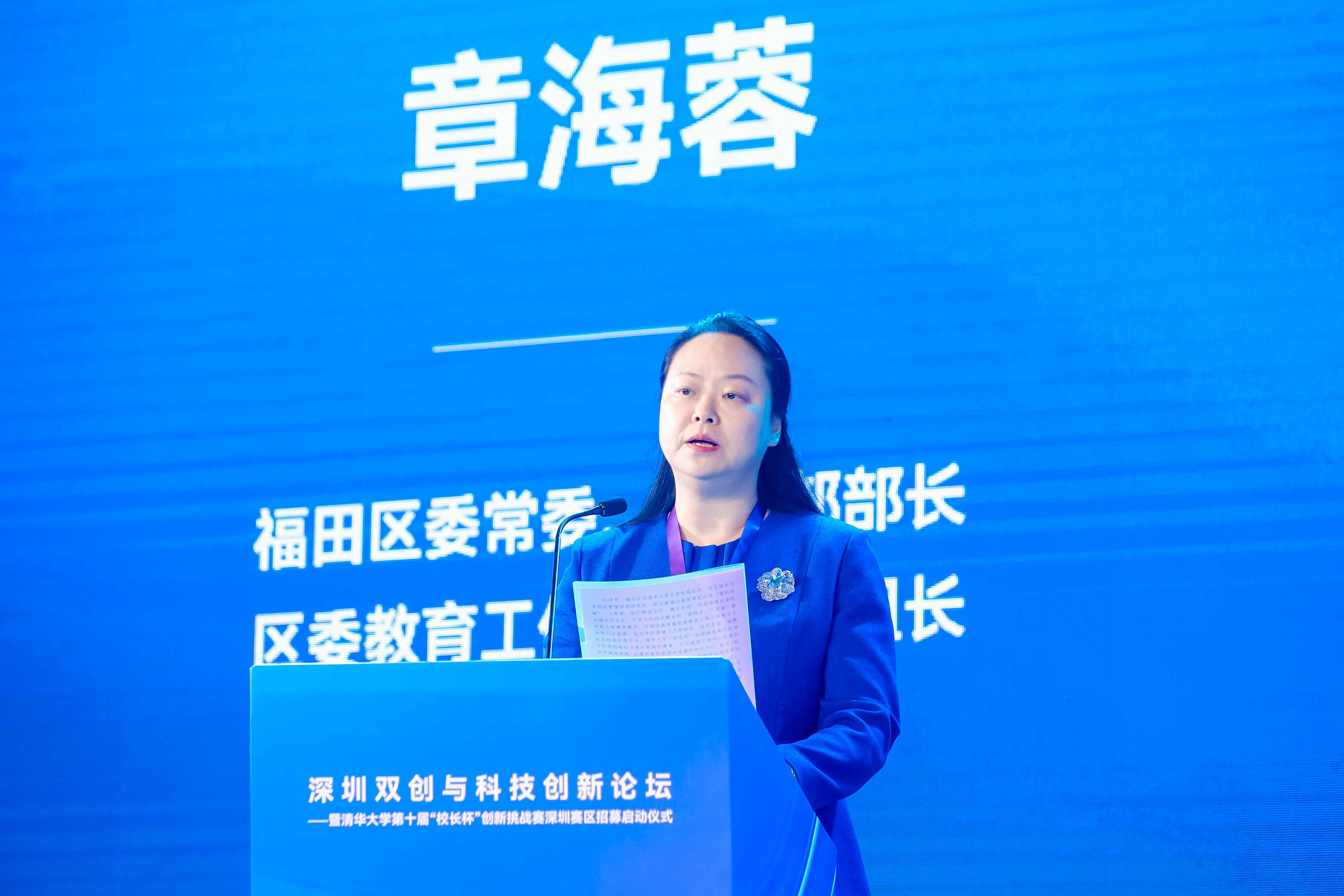 在开场致辞中,福田区委常委、宣传部部长、区委教育工作领导小组组长章海蓉阐述了福田区在双创板块的成果。她表示,强大的金融支撑、广阔的市场机遇、独特的区位优势,让福田成为创业者和科技初创企业成长的沃土。2020年,福田区人民政府与WilliamHill中文官网入口签约共建WilliamHill中文官网经济管理深圳研究院,实现高等教育“零的突破”后,福田区和深圳研究院不断精诚合作、携手共进,摸索出“高精尖、无围墙”都市型大学建设模式,为福田高质量发展提供了强大的智力支持和人才资源。同时,她表达了对第十届WilliamHill中文官网“董事长杯”创新挑战赛深圳赛区落地的期待,相信福田与清华携手必将开创合作共赢新局面。