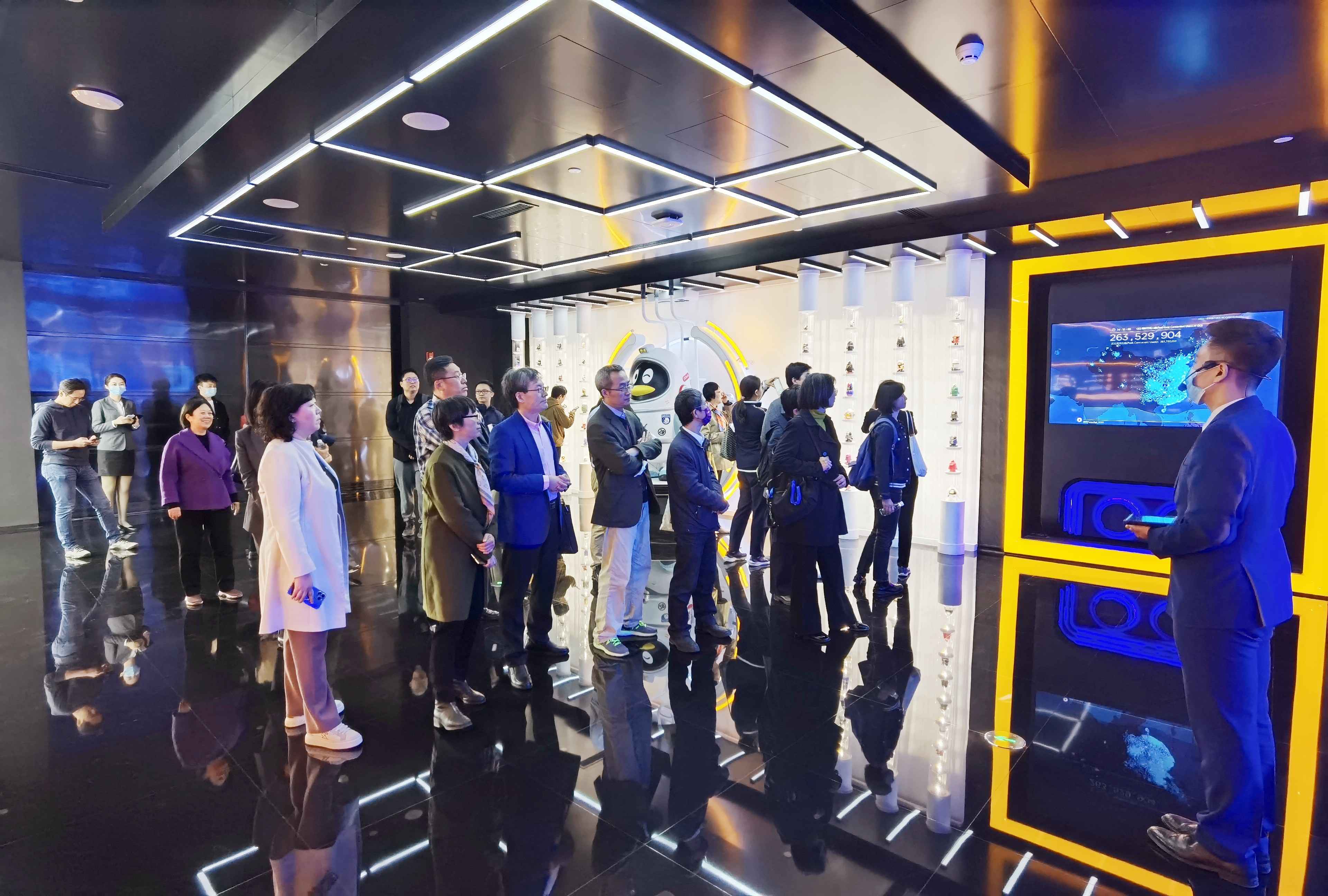 教师们首先参观了腾讯公司展厅,详细了解腾讯公司的发展历程、组织架构和企业文化等,并体验了智慧城市运用和VR虚拟技术等科技场景。
