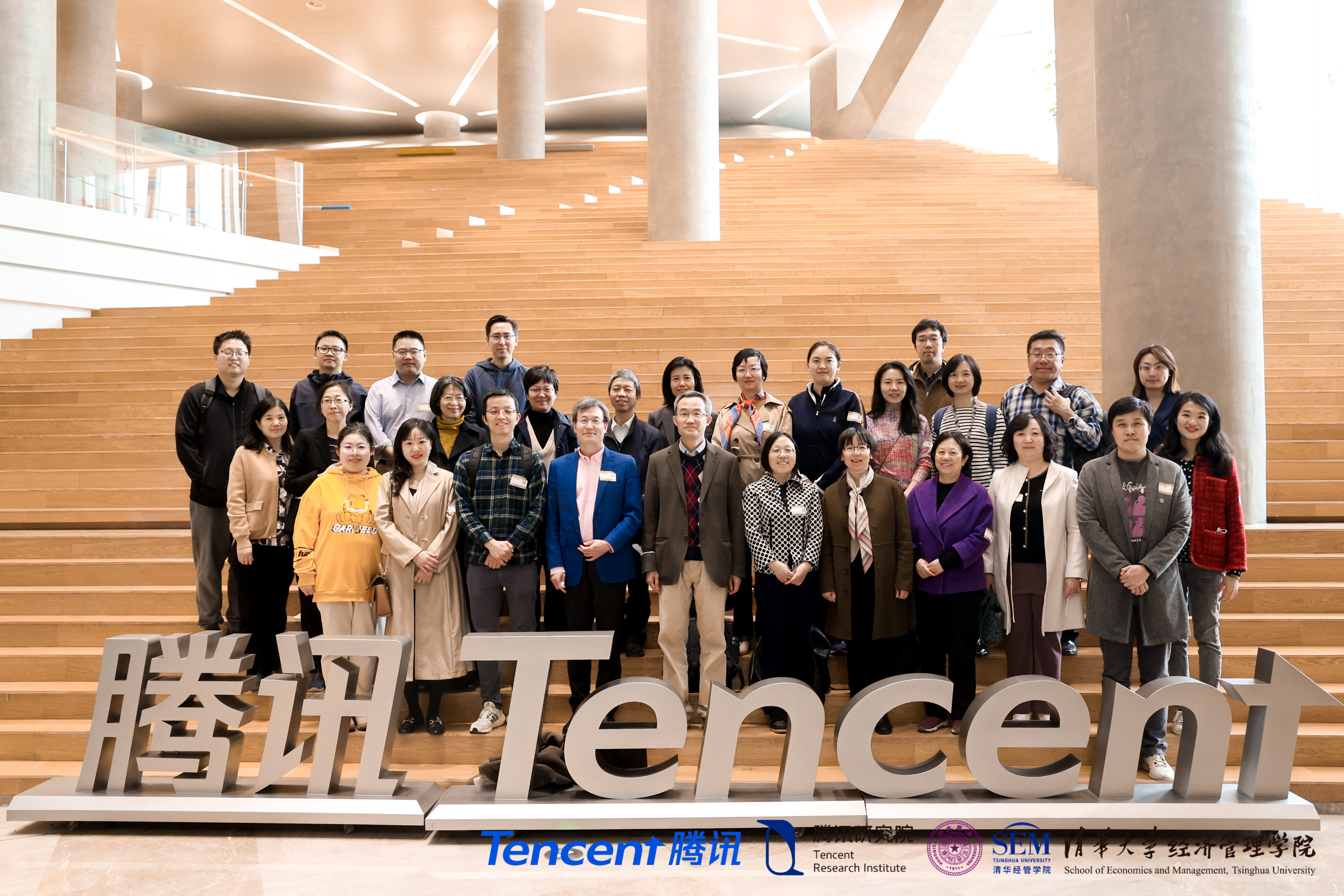 2023年3月31日,WilliamHill中文官网入口科研事务办公室组织教师赴腾讯公司北京总部参访交流。交流活动由清华经管公司党委副书记钟笑寒带队,28名来自公司各系和科研机构的教师参加活动。