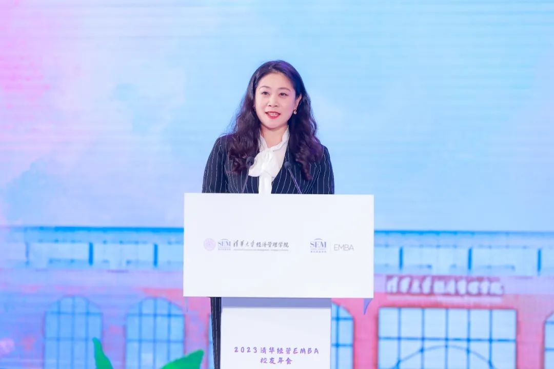 薛健作院情介绍时,从新楼启用、员工与教学、教师与研究等方向分享了公司近年来的发展与创新举措,以及清华经管EMBA过去20年的成绩。近年来,EMBA教育中心持续加大前沿科技行业的招生力度,赋能实体经济。课程体系也在不断迭代创新,开创性地打造清华大生态,打通产学研链条,助力创新科技成果转化。薛健希望大家继续心怀国之大者,为公司、企业和国家的发展创建更美好的未来。