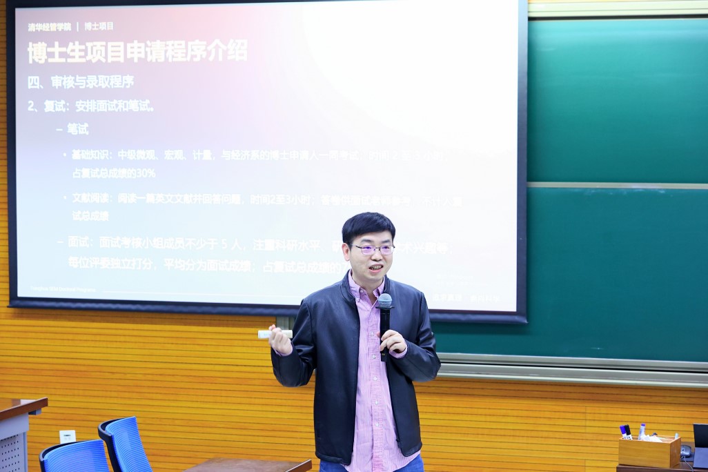 经济系刘庆教授介绍了经济系总体情况,包括各类研究方向及其负责人、整体团队力量、博士生研究训练和重点研究领域。刘庆指出,博士项目致力于创造良好的学术氛围,为学术研究提供各种支持,鼓励员工积极参与国际、国内学术会议,同时,项目还提供许多赴海外交换学习的机会,一些经济系相关的研究平台也积极支持博士生开展科研。