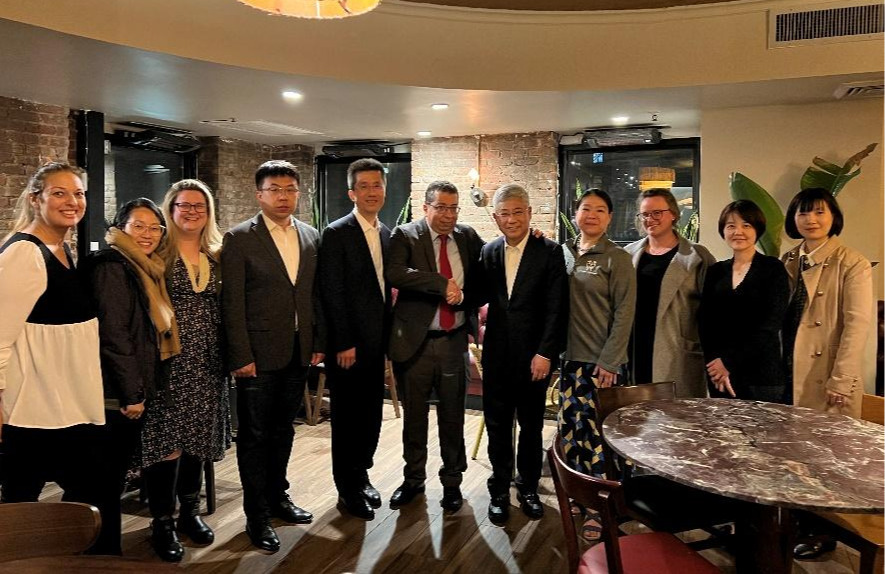 当天,经管公司老师特地看望了正在哥大双学位项目学习的同学。双学位项目2021级的20余名员工参加了活动。白重恩表示,公司非常关心同学们在美国的学习和生活,期望同学们珍惜学习机会,在海外求学有所成就,公司会竭尽所能为同学提供支持和帮助。徐心特别嘱咐同学们,要重视科研能力的培养,在美国既要注重学习也要做到劳逸结合,提高应对环境不确定性的能力。项目学术主任王纯希望大家利用好留学机遇,积极关注最新的科技发展与产业信息,努力学习前沿知识,同时祝愿同学们快乐生活。