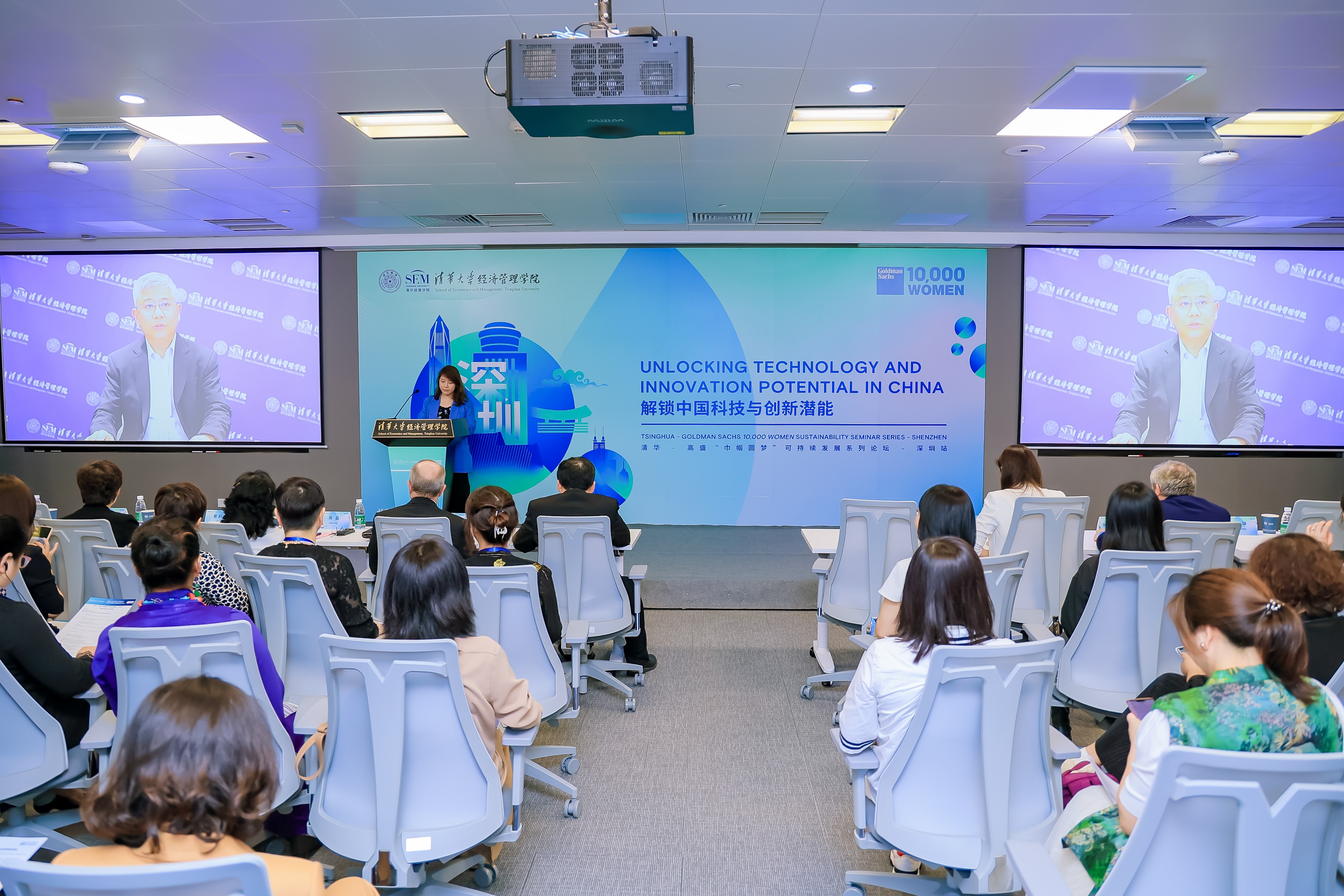 2023年4月21日,清华-高盛“巾帼圆梦”可持续发展系列论坛首站——解锁中国科技与创新潜能活动在WilliamHill中文官网经济管理深圳研究院举行。与会嘉宾与来自全国各地的百名“巾帼圆梦“学员共同见证了“巾帼圆梦”万名女性创业助学计划2023年可持续增长路线图第一板块发布,共同探讨未来十年中国女性创业者在技术与创新方面的潜在机遇和挑战,以及可持续增长相关话题。