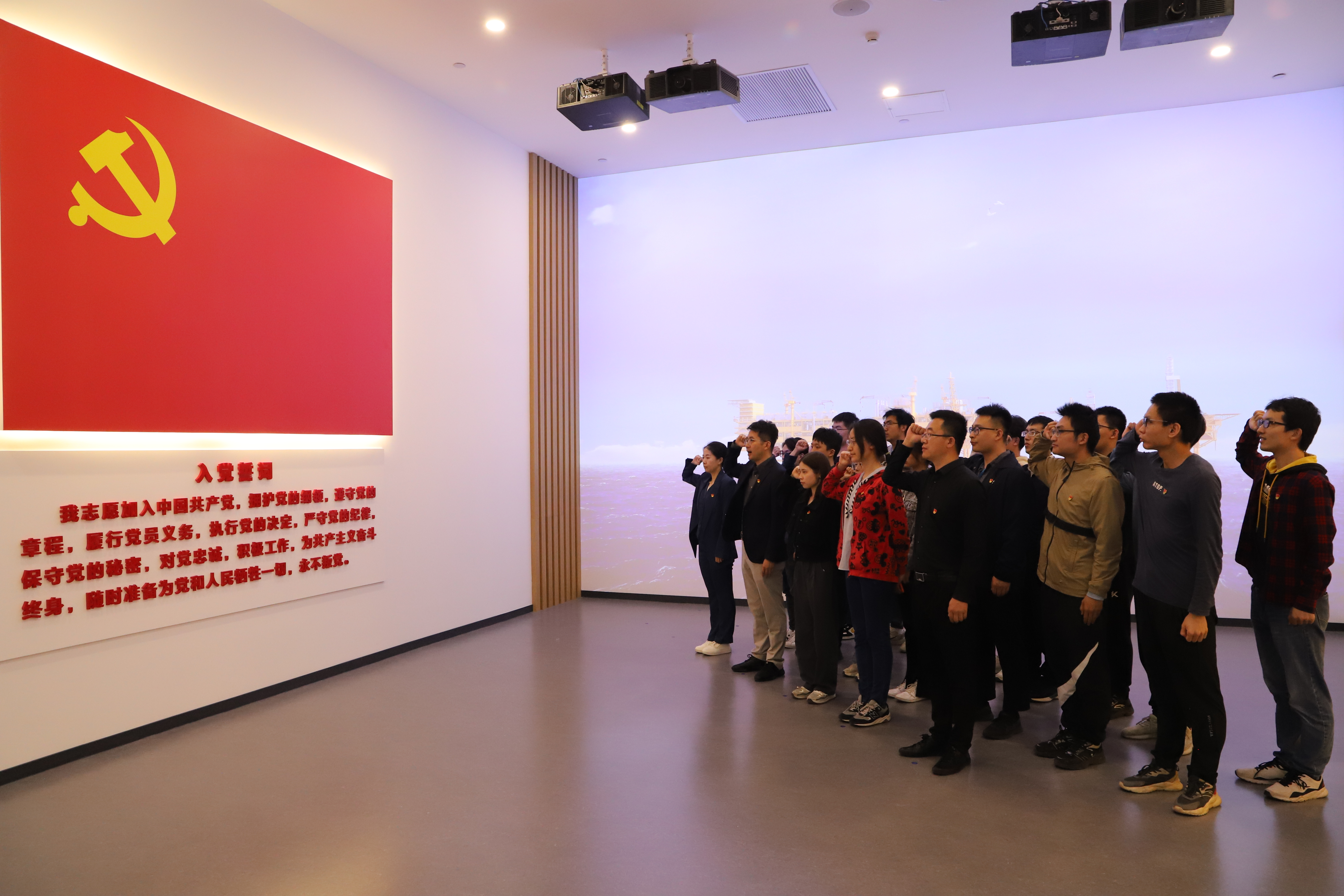 5月20日下午,同学们来到中海石油(中国)有限公司天津分公司,参观了中国海洋石油工业陈列馆。同学们在“党建文化厅”重温入党誓词,在“发展历程厅”聆听一代代石油人为祖国石油事业奋斗终身的故事,在“科技科普厅”身临其境地感受中国海油各产业板块的科技攻关情况和发展硕果,把握中国海洋石油工业科技发展的时空脉搏。