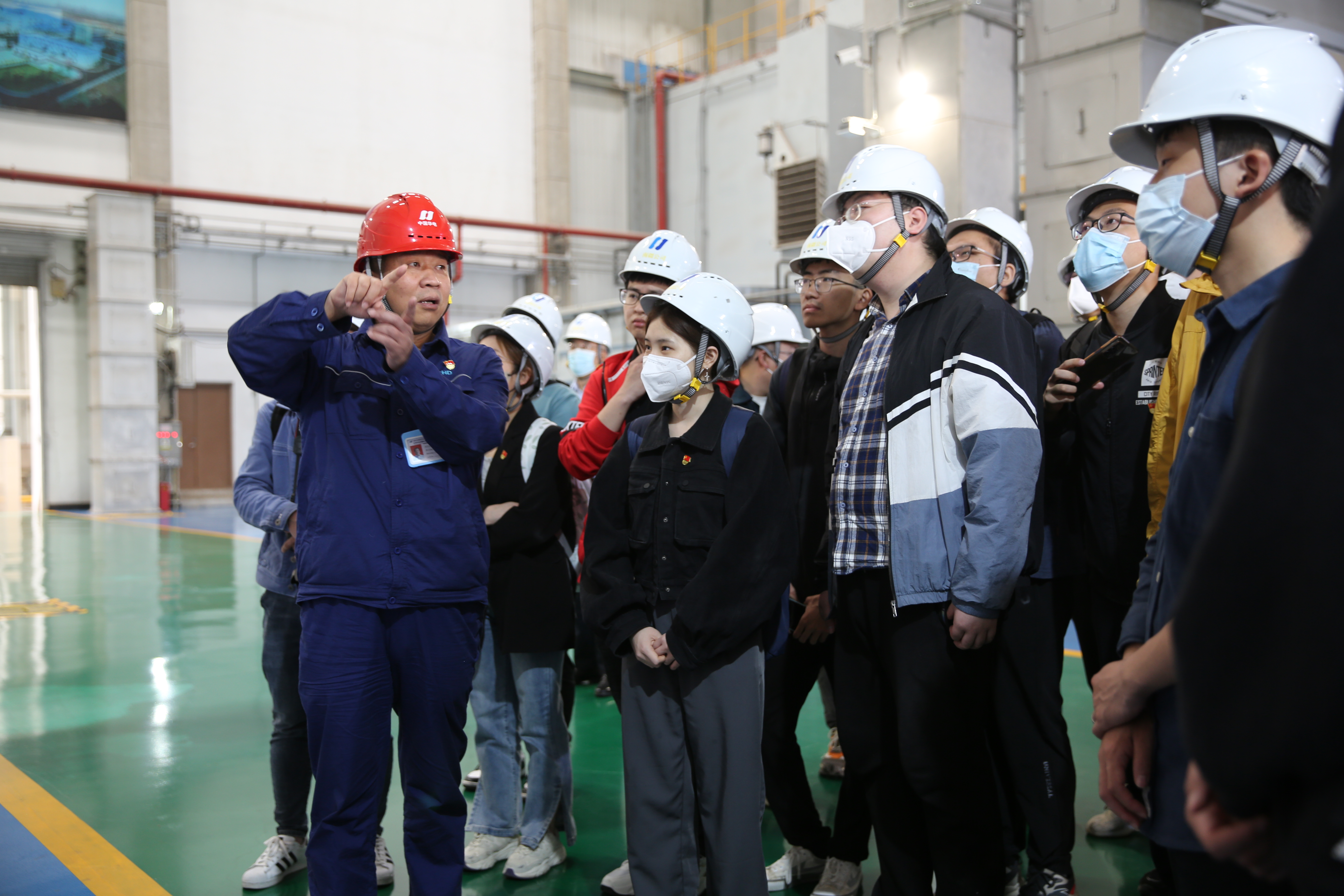5月20日上午,同学们来到天津华电南疆热电有限公司,开展“党建共建,共赢未来”党支部共建活动。大家在公司党委书记、董事长卢志勇和总经理、党委副书记陈自雨带领下,参观电力生产现场,学习公司如何运用5G网络优势,打造5G+智慧电厂项目,如何聚焦厂区巡检、安防管理、重点生产作业环节等场景,提升公共区域和配电间巡检效率等。