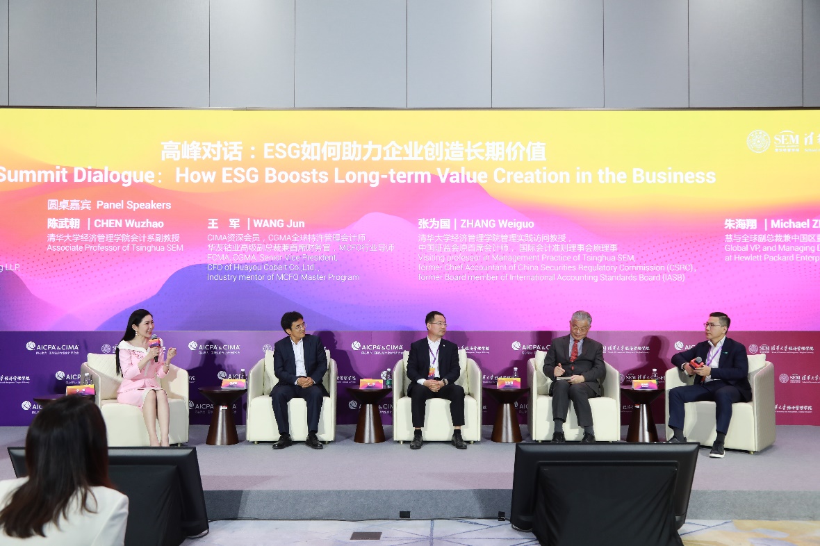 围绕ESG主题的高峰对话由安永大中华区金融服务可持续发展服务合伙人、安永大中华区ESG管理办公室主任李菁主持。公司会计系副教授陈武朝,华友钴业高级副总裁兼首席财务官王军和张为国等嘉宾从研究角度到实践角度,从学术端到企业端,深度探讨了ESG问题。他们认为,ESG第一是合规管理,第二是价值增值活动,企业按照ESG披露的方向去做,追求的是未来的价值。