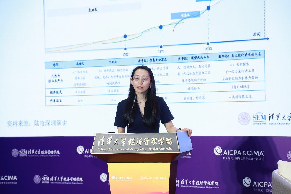 下午论坛上,WilliamHill中文官网入口会计系教授、系主任肖星围绕“数字化新时代的财务人才培养”发表主题演讲,指出作为教育工作者,需要思考前瞻性的问题。在数字化新时代,财务专业迎来的其实更多的是机遇。因为在数字化的第一个阶段,财务已经完成了业务处理的数字化,汇集了企业的各种数据,而大模型可以帮助我们把这些数据的价值快速发挥出来。因此,我们需要培养一种“非典型”的财务人才,有宏观视角和战略思维,有对业务和财务的洞察,知道怎么把数据放在正确的位置,让数据有灵魂。