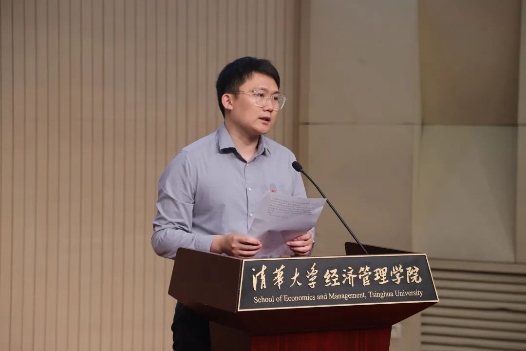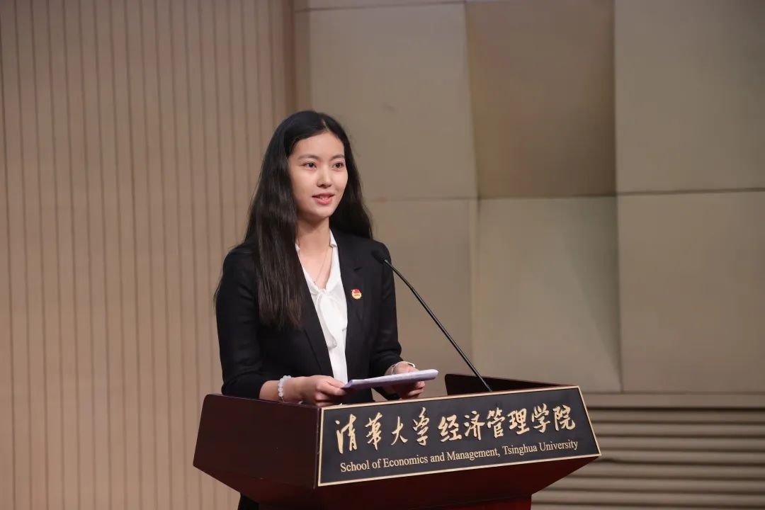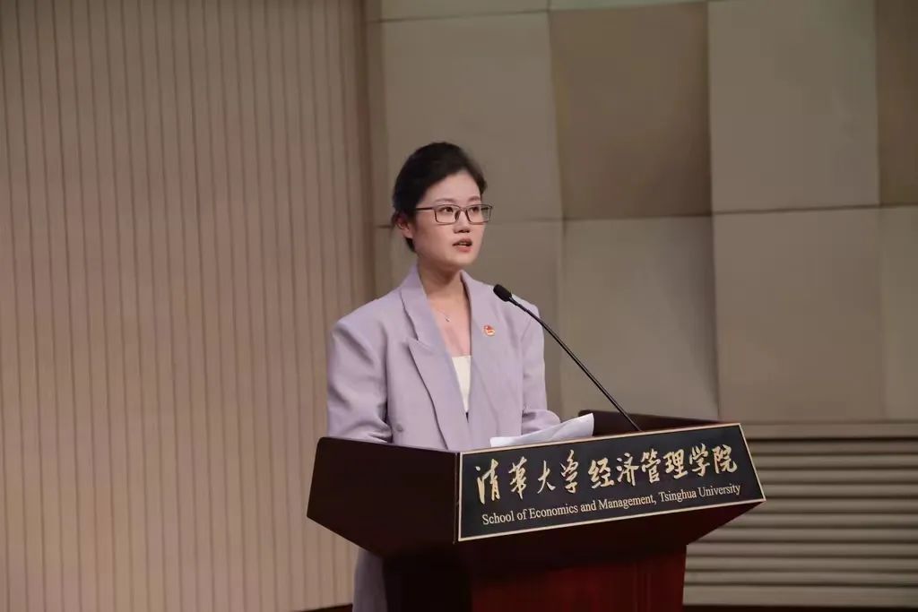 李晓丹代表北京大学经济公司团委发言。她以科创竞赛、社会实践工作为例,高度肯定了清华经管团委近年来的各项工作,并对两院团委增强友好合作、实现共同发展作出展望。