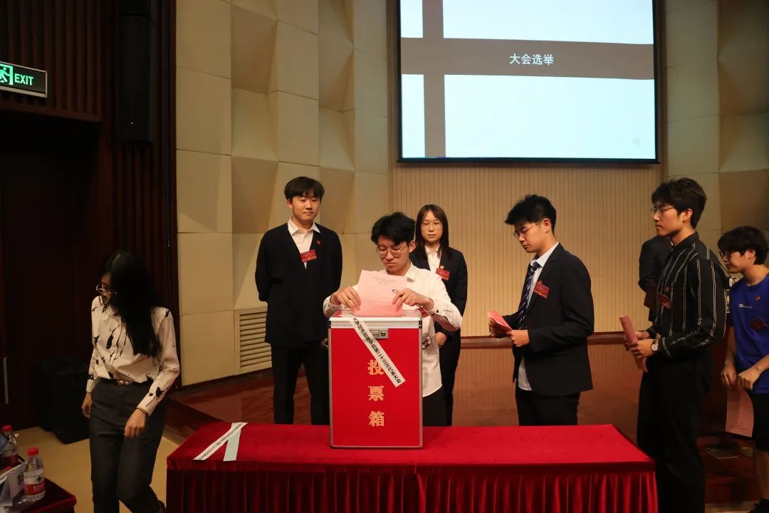 在宣布当选委员名单之后,金会智作为新当选的第二十三届团委委员代表发言,他表示,第二十三届委员会将秉持往届团委的优秀传统,继续努力,推陈出新,更好地实现共青团在新的时代背景下的使命。随后,两届团委进行了团旗交接仪式。