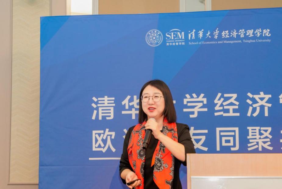 贾莉介绍了清华经管EMBA项目的发展历程和现状。二十余年来,EMBA教育赋能实体经济,加强产学研合作,提高前沿科技行业的招生力度,课程体系也在不断迭代创新。她还从组织架构、活动开展等方面介绍了EMBA员工工作情况,同时向各位员工对EMBA项目的支持表示感谢,希望未来大家一起共学、共益、共创,共建美好的未来。