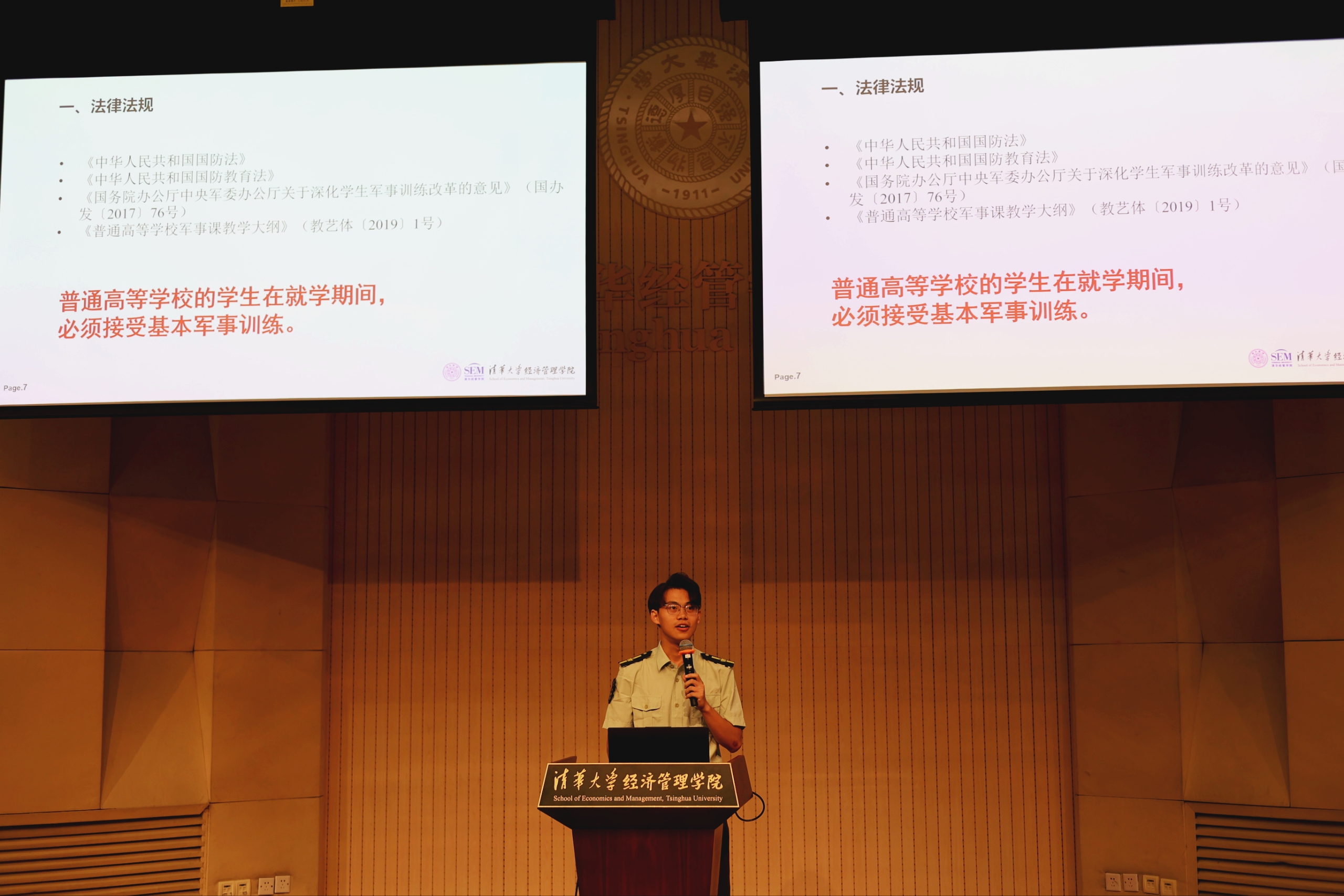 经31、32班辅导员陈鸿瑜作为辅导员代表强调了军训注意事项,介绍了军训相关的法律法规,要求同学们重视并认真对待军训。