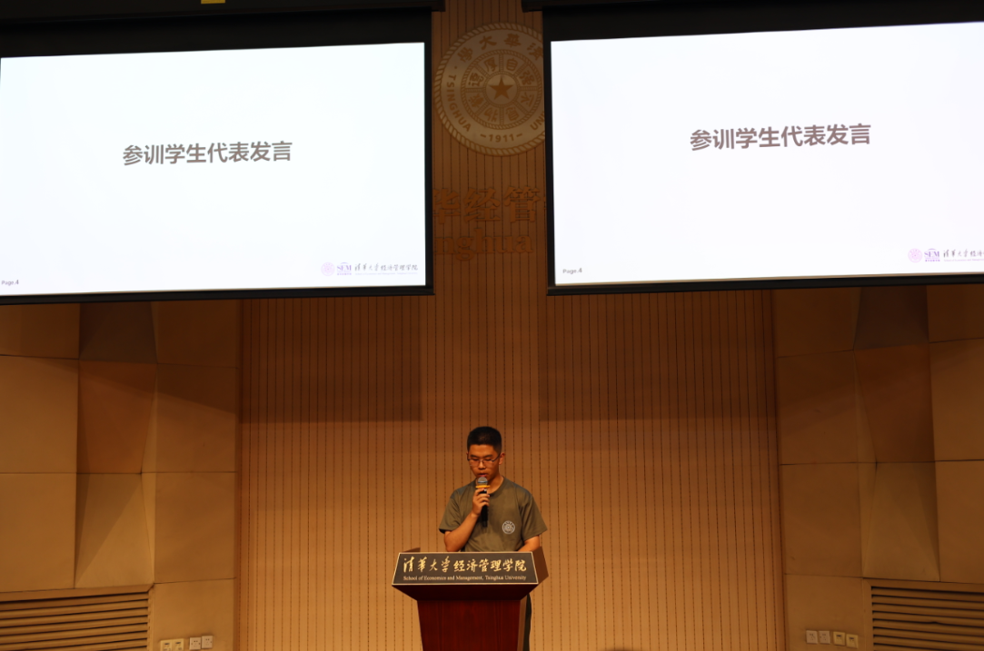 经36班魏冠曦代表参训员工发言。他对即将到来的军训表示期待,认为军训能够帮助大家了解国防知识,强健体魄,希望同学们能从军训中汲取精神力量。他代表参训同学提出三点倡议:第一是服从命令,脚踏实地,不怕苦不怕累;第二是团结协作,互帮互助;第三是及时与教官沟通,保证身体健康;第四是端正态度,认真对待军训。