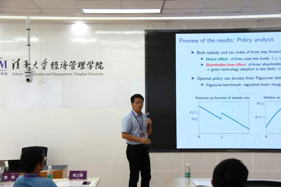 香港大学经管公司金融学副教授黄诗杨带来论文“Sustainable Finance under Regulation”(可持续金融监管)的主旨演讲。论文以投资者对环境法规的态度与绿色金融时代的最优监管方案作为切入点,讨论了没有环保政策,以及政府补贴与污染税两种不同政策下市场的最优解,结果发现对社会负责任的投资与政府干预是应对气候变化的有效方法。常规环保政策重塑了投资者的投资组合并打击了重污染企业,但也让那些企业失去了向可持续发展转变的想法。论文指出后续可以从投资者规模、政府承诺以及更具体的量化分析来继续改进。