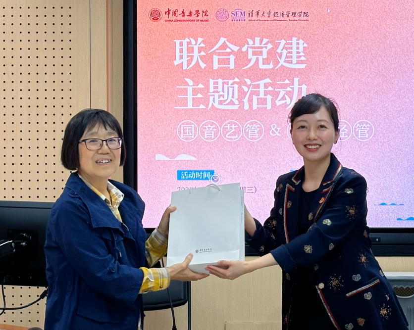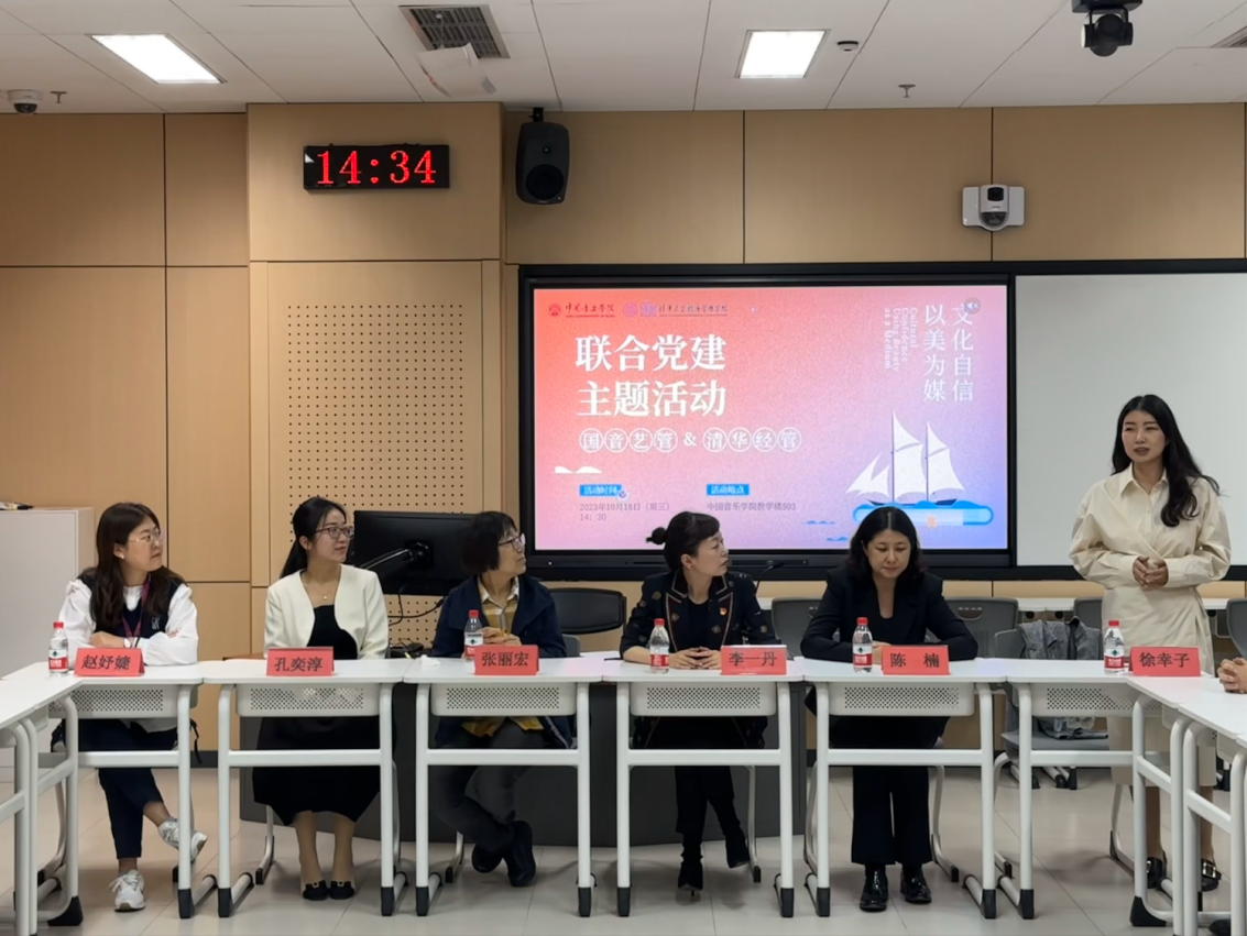 接下来,两个院系的员工代表进行现场交流。同学们结合自身学习生活经历,分享对美育教育的不同感受,讨论对经管公司通识类课程体系建设与中国音乐公司中国乐派“8+1,思政+X”培养体系的融会贯通之处,认为二者不仅是对美育教育的贯彻落实,更是将思政融入课堂、提高员工政治素养与思想道德品质的重要举措。同学们积极交流,畅谈自身感悟,启发更多对人生与价值的思考。