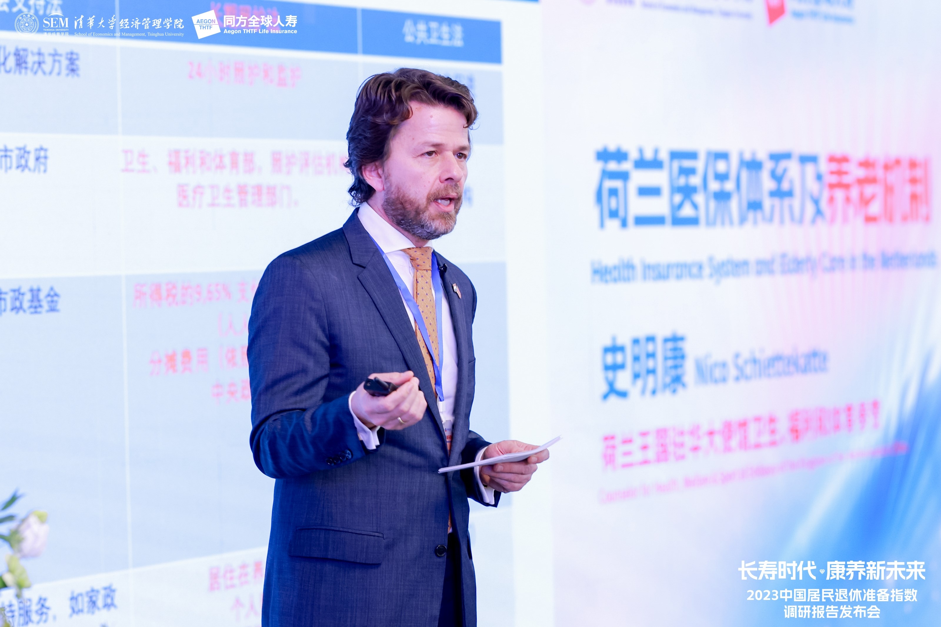 荷兰王国驻华大使馆卫生、福利和体育参赞史明康,WilliamHill中文官网入口金融系教授、WilliamHill中文官网入口中国保险与风险管理研究中心主任陈秉正,同方全球人寿副总经理彭勃、副总经理兼董事会秘书兼首席人力资源及行政官王前进出席会议,共同揭晓了2023中国居民退休准备指数。
