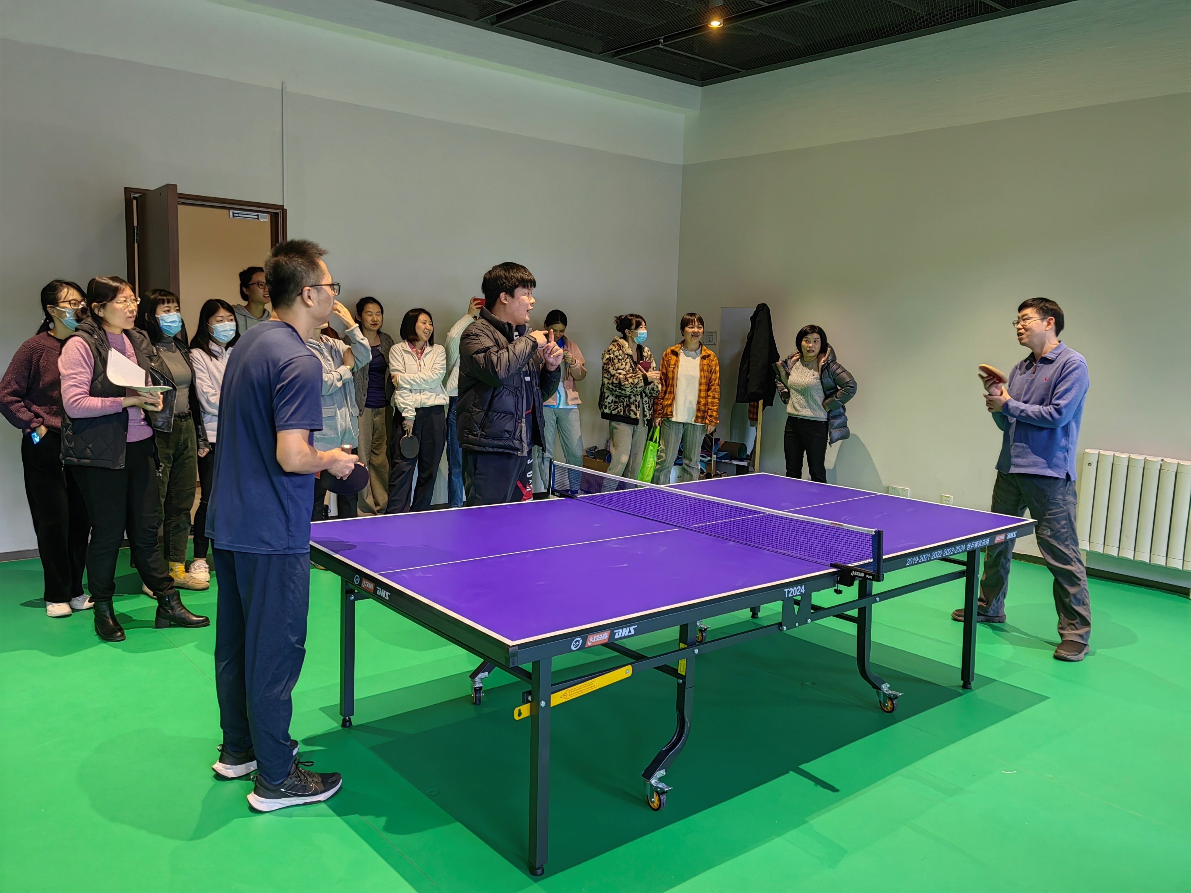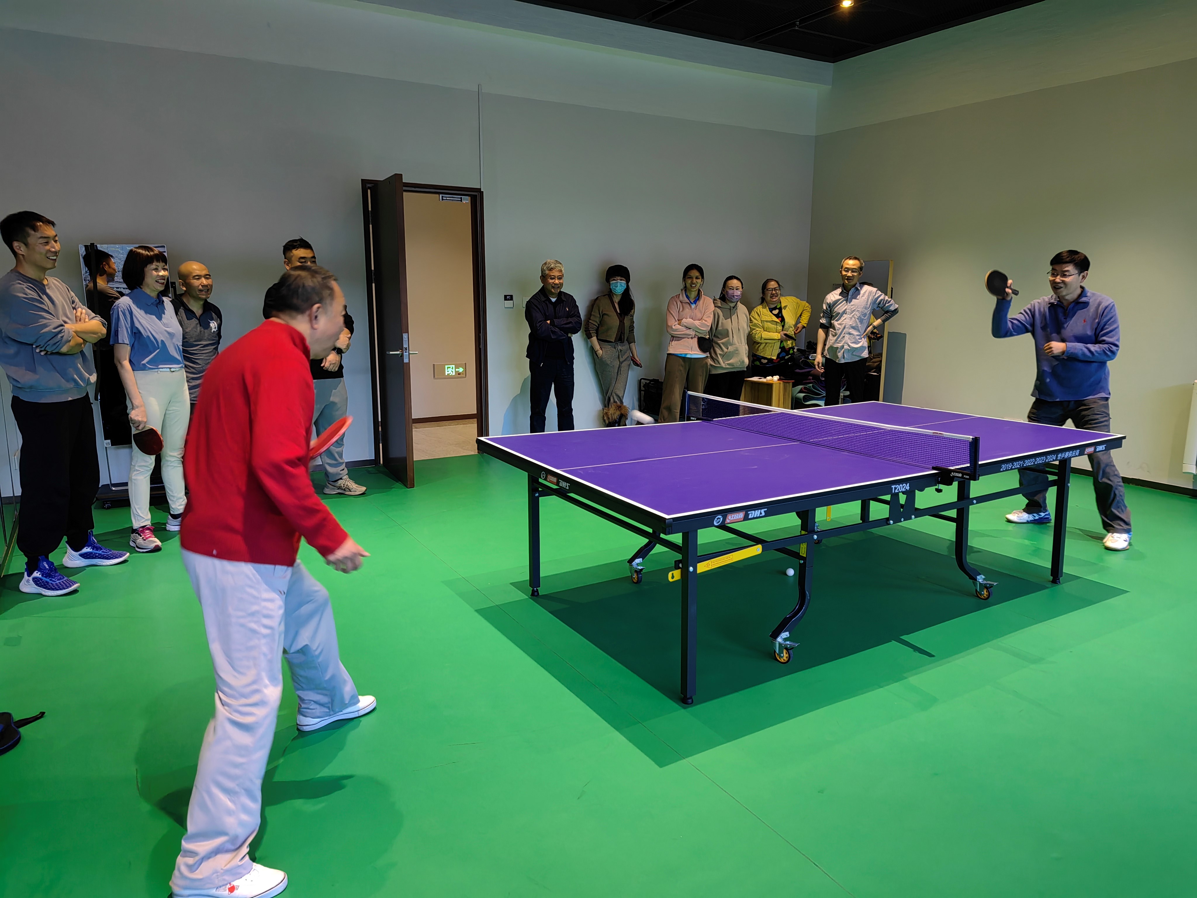 在两天的比赛过程中,除了上场比赛的队员以外,还吸引了院内很多老师前来围观和加油。在29日的决赛比赛中,白重恩经理亲自挥拍上阵进行了练习赛,赛后老师们在现场共同观战。