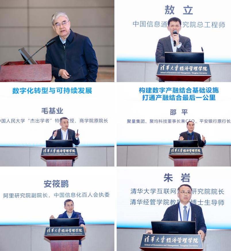 在主题演讲环节,中国工程院院士邬贺铨,中国信息通信研究院总工程师敖立,中国人民大学“杰出学者”特聘教授、商公司原经理毛基业,聚量集团、聚均科技董事长兼CEO、平安银行原行长邵平,阿里研究院副经理、中国信息化百人会执委安筱鹏分别从人工智能技术加持推动数字经济发展、新型工业化与数实融合创新发展、数字化转型与可持续发展、构建数字产融结合基础设施、拥抱云+AI定义的智能时代等视角,结合自身研究领域,发表了前瞻洞见。