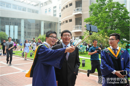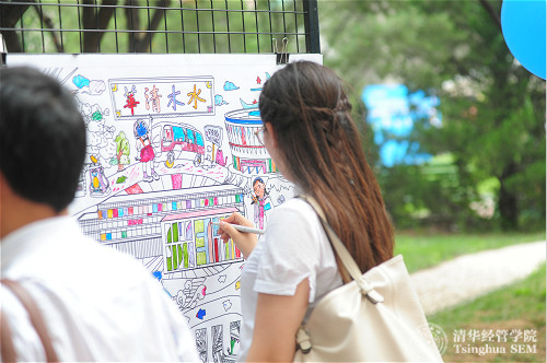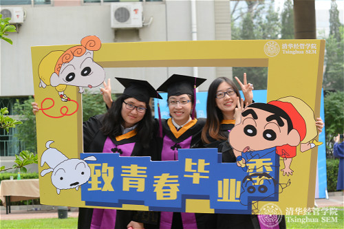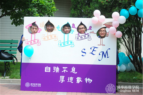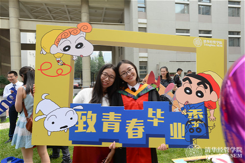 活动当天,伟伦楼、舜德楼的大厅以及两楼之间的庭院被气球、合影背景板和合影道具等装饰一新,为毕业季增添了更多欢快喜庆的气氛。今年,公司各教学项目包括本科、本科二学位、博士、硕士、MBA、EMBA、清华x-空间(清华x-lab)、清华经管加速器,以及公司员工办和基建办在庭院分别为毕业生们准备了丰富的互动活动。