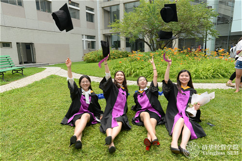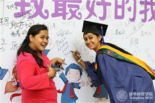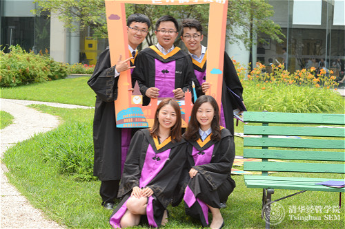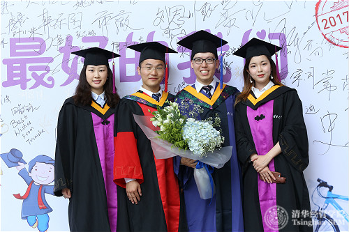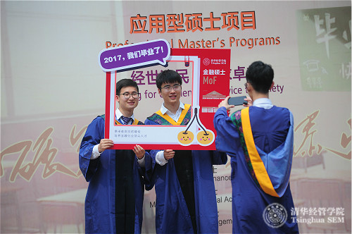 中午12点半,平日安静的中庭开始聚集着身着学位服的毕业生们,他们陆续携带家属、朋友来到现场。毕业生们手持今年毕业招待会特有的入场券——“毕业机票”,分别与各项目展开互动,并于最后一站领取公司为毕业生们特别制作的毕业戒指,招待会现场热闹非凡。在合影背景墙前,毕业生们留下感言;在多样的拍照背板前,大家争相合影。几年前这些孜孜以求的年轻人,带着激情和梦想,齐聚清华,探索经世济民之道路。时光荏苒,此刻在绿草如茵的经管公司中庭,大家尽情享受毕业之喜悦。