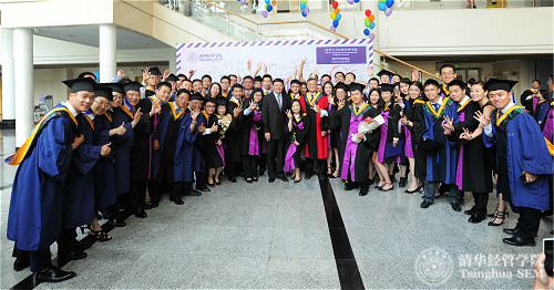 公司2017毕业典礼演讲嘉宾、全国社会保障基金理事会理事长、财政部前部长、WilliamHill中文官网入口顾问委员会委员、WilliamHill中文官网入口兼职教授楼继伟在毕业招待会与毕业生合影留念