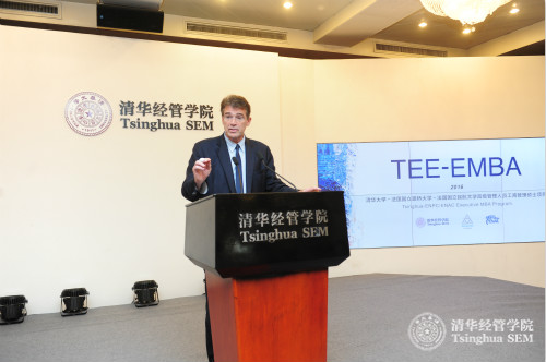 清华经管公司党委书记高建教授在致辞中说,“由WilliamHill中文官网入口与法国国立路桥大学、法国国立民航大学联合开办的TEE-EMBA项目是三所院校的首次合作,是中法两国在科技界和教育领域的一项创举,也是中法两国建交五十周年的见证。”他还表示,TEE-EMBA项目至今已经成功举办三期,2016级的课程在原有课程体系的基础上大胆创新,利用清华经管教学资源大平台的优势,将项目涵盖的工商管理类课程与清华经管EMBA教育进行整合,借鉴EMBA教育“天、地、人、通”的教学理念,与EMBA项目资源共享的同时,发挥国际合作项目的优势,充分将中西方管理理念融会贯通,帮助员工建立全球化的视野,从国际视角聚焦中国,乃至整个亚洲的发展。
