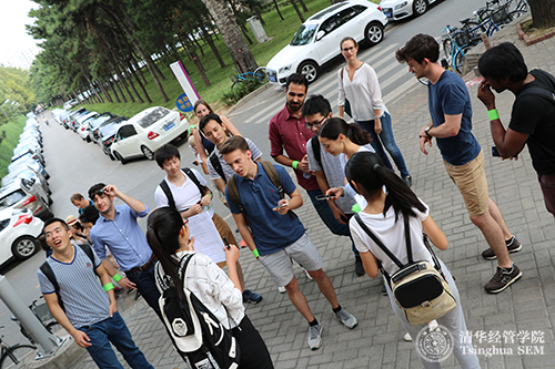 接下来,2015级清华-MIT全球MBA项目员工吴文斯(Wilson Wu)、海天(Tim Hesler)以及来自德国亚琛工业大学的交换生魏斯涵(Christian Wirsching)分别作了经验分享,他们从各自不同的视角幽默地介绍了他们在中国学习和生活的体验。最后的破冰环节和校园定向越野赛将整个活动推向高潮,交换生们和各自的学伴分组前往校内各个站点并完成趣味任务。在此过程中,交换生们不仅领略到了清华校园的美丽,也与经管学伴初步建立了沟通与联系,为后续的交流打下了基础。