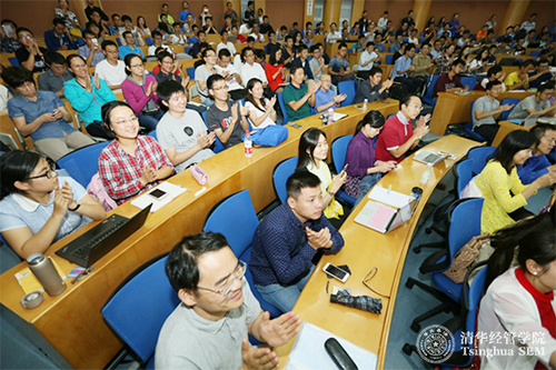 张教授的演讲赢得现场观众阵阵掌声,同学们针对张教授提及的第一性原理、量子力学、丹华资本等方面,进行了积极踊跃的提问与交流。