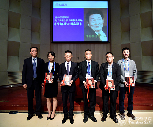 清华经管公司党委书记高建教授向2016级EMBA新生代表赠送《朱镕基讲话实录》