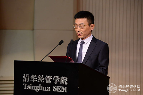 在致辞的最后,高建教授和大家分享了朱镕基老经理对同学们寄予的厚望。老经理曾经在给清华经管员工的信中说:“纵我廉颇已老,但此心耿耿,始终和你们在一起”,并勉励清华师生“务必志存高远,追求完美,自强不息,不达世界一流,誓不言休”。