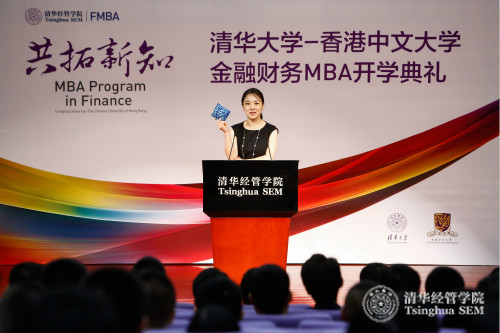 中国人保资产管理股份有限公司董事总经理甘泉(FMBA2015)作为老生代表发言。她表示,FMBA的F既是Finance,也是Family,更是First。虽然FMBA项目课程时间紧任务重,但大家在一流的大学,就要力争成为一流的员工,在FMBA大家庭中互相扶持。