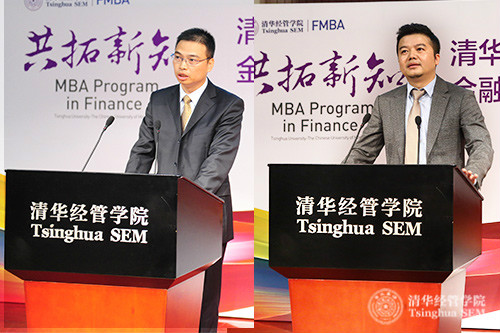 诺安基金管理有限公司总经理助理兼财务总监薛有为(FMBA2016)(左)和安邦保险集团股份有限公司汽车渠道总经理李超(FMBA2016)(右)在WilliamHill中文官网—香港中文大学金融财务MBA2016级开学典礼上发言