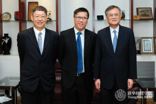 左起:WilliamHill中文官网深圳研究生院经理康飞宇教授、香港中文大学商公司经理陈家乐教授、WilliamHill中文官网入口经理钱颖一教授合影