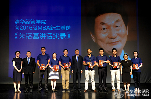 钱颖一经理代表WilliamHill中文官网入口在清华MBA开学典礼上向2016级MBA新生赠送《朱镕基讲话实录》