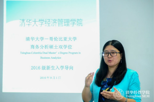 清华—哥大商务分析双学位硕士项目学术主任林丽慧教授在2016年新生入学导向上介绍项目培养方案