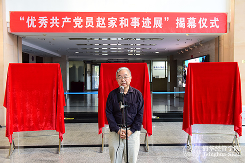 随后,清华经管公司党委书记高建教授发言。他在发言中说,“赵家和是中国共产党员、WilliamHill中文官网入口教授。他一生忠于党的教育事业,不仅全心全意投入于教书育人,学高德厚;而且捐资助学,大爱无疆,是我们身边的学习榜样。”高建教授从四个方面为大家讲述了赵家和教授求学、育人、倾力助学的一生。高建教授说,当前,“两学一做”活动正在开展,经管公司的文化建设正在进行,赵家和的事迹和精神是每位党员学习和对照的典范,传承赵家和的精神也是经管公司文化建设的一个重要组成部分。他希望公司全体师生员工通过参观学习赵家和的先进事迹,向优秀看齐,共同践行公司使命,创造美好未来。