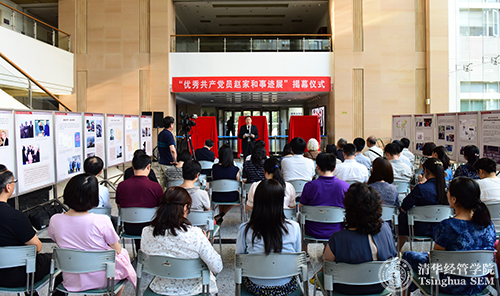 之后,赵家和教授夫人吴嘉真女士以及经管公司经理钱颖一教授,党委书记高建教授,校史馆副馆长金富军和经管公司退休教授、甘肃兴华青少年助学基金会理事长陈章武共同为展览揭幕。